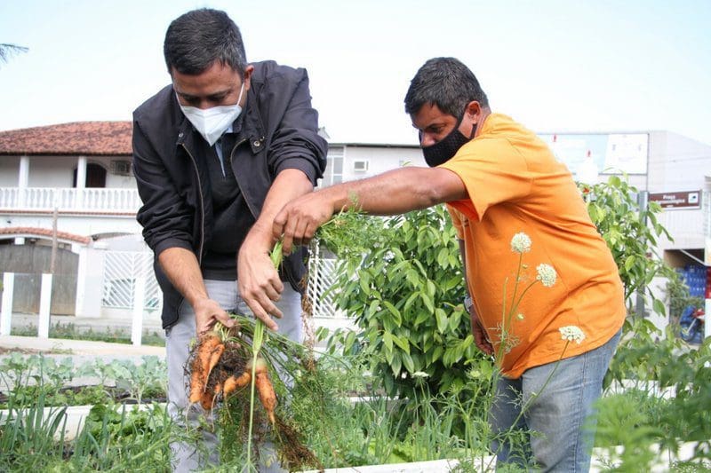 Na horta agroecológica que fica na rotatória de Araçatiba, outra equipe distribuiu cenoura e guando colhidos ali a quem foi buscar. O professor de muay thai Paulo Roberto Muniz, de 62 anos, retirou da terra a primeira raiz de cenoura. “Gostei de participar, me senti bem. Acho tudo isso maravilhoso, produtos sem nada que faça mal, coisa de primeiro mundo”, avaliou.