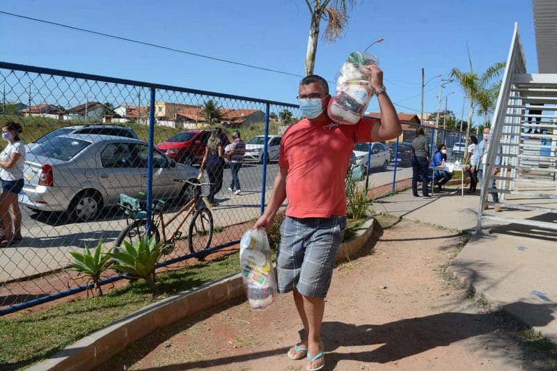 Lá o casal formado pelo empresário Márcio Quintanilha, de 58 anos, e a supervisora Auzilene Soares, de 45, foi buscar os volumes do filho que estuda no 3º ano. “A clientela diminuiu demais na pandemia e essa cesta é uma ajuda enorme”, garantiu ele, que mora com a esposa no Jardim Atlântico. Já a diarista Elizabeth Moraes, que tem 47 anos e o filho no 5º ano na unidade, afirmou que os alimentos doados são o que vem mantendo a família. “Eu estou desempregada e é a cesta que garante nossa alimentação. Para mim, é muito bom”, afirmou.