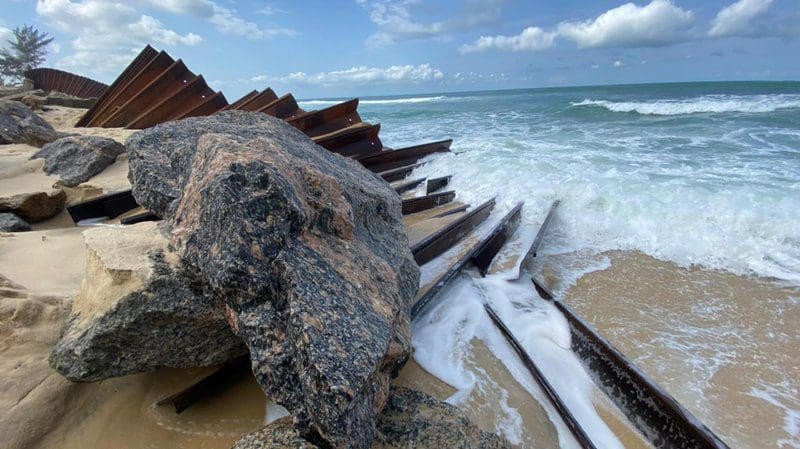 “É preciso que a faixa de areia seja restaurada, para possibilitar o posicionamento do maquinário que vai retirar as placas. Só então poderemos recuperar cada uma das peças danificadas”, projetou Camacho, ressaltando que, desta forma, fica protelada a conclusão da intervenção. “Não tínhamos um prazo estipulado para finalizar, até porque se trata de uma obra costeira sempre sujeita a fatores como o tempo e as condições do mar, sobre os quais não temos controle. A natureza é quem vai ditar o ritmo de trabalho”, afirmou. “O dano que tivemos ficou na casa de 3% do total de estacas instaladas nesse local, dada a ressaca que foi muito mais forte do que nós esperávamos. Vamos também avaliar uma forma de instalação onde seus efeitos sejam ainda mais minimizados”, disse o diretor.