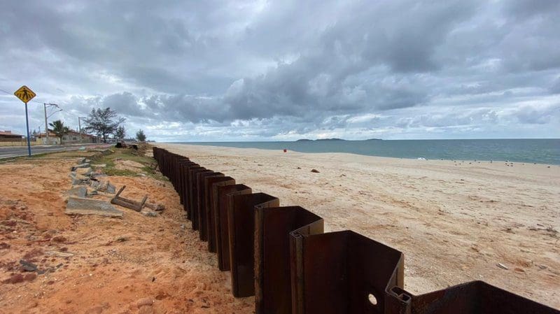 Cada placa metálica tem 12 metros de comprimento e o material vem sendo utilizado desde 2019 na revitalização da orla de Itaipuaçu, onde ajudou a acabar com um histórico de danos causados por ressacas.