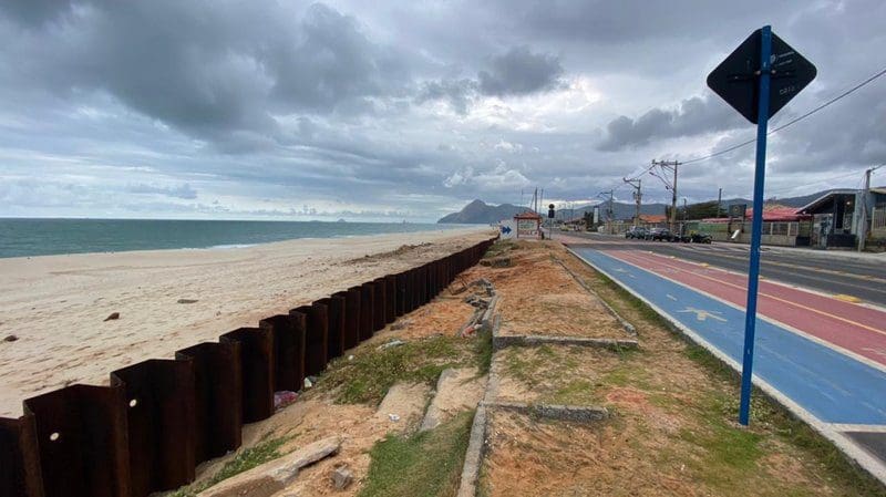 Técnicos da autarquia de Serviços de Obras de Maricá (Somar) estiveram no ponto atingido pela força da ressaca nesta terça-feira (03/08), onde avaliaram que o prejuízo poderia ter sido ainda maior sem a presença das estacas-prancha.