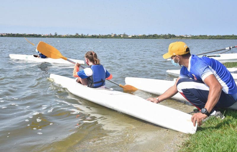 Atividade na Lagoa do Boqueirão faz parte do projeto “Ao Lado do Ídolo’, iniciativa que aproxima estudantes à vivência dos atletas