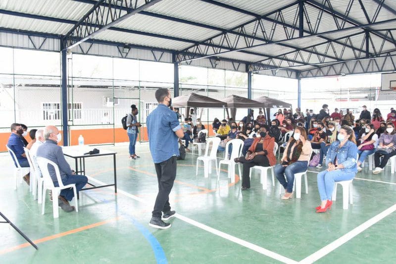 A palestra sobre Educação e Mercado de Trabalho teve a participação dos secretários Adilson Pires (Trabalho) e Sady Bianchin (Cultura), do subsecretário de Educação, Rodrigo Moura, e do diretor-presidente do Instituto de Ciência, Tecnologia e Inovação de Maricá (ICTIM), Celso Pansera, que recomendou aos jovens que não parem nunca de estudar.