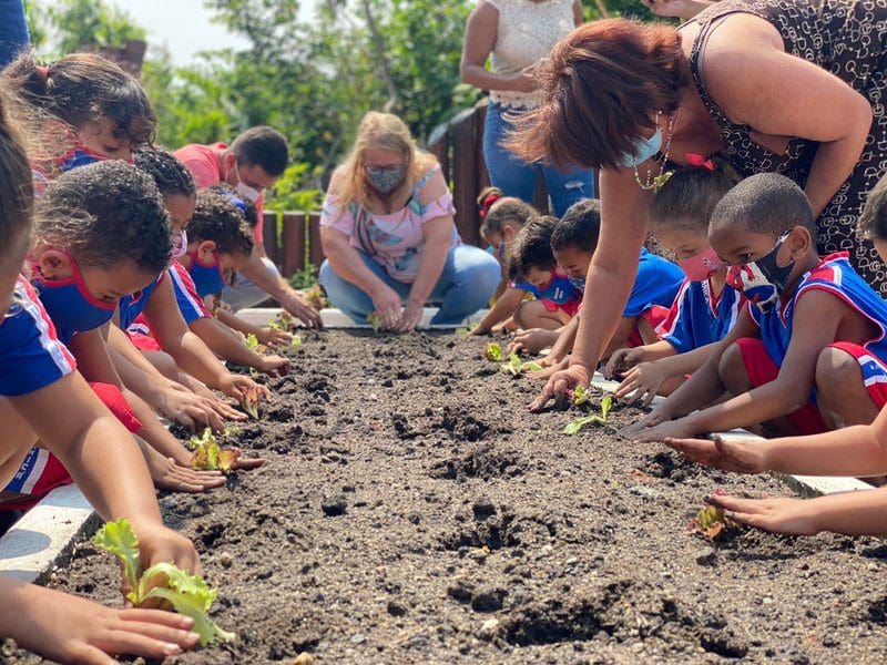 A Prefeitura de Maricá por meio da Secretaria de Agricultura, Pecuária e Pesca, promoveu o plantio de aproximadamente 400 hortaliças com alunos da Escola Municipal JIM Trenzinho da Esperança, na Praça de Guaratiba, nesta quarta-feira (29/09). Vinte alunos das turmas do jardim 1 e 2 plantaram mudas de couve e alface. Também aprenderam sobre cuidados com a terra e técnicas de adubação.