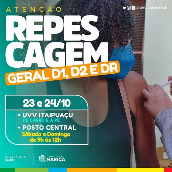 A Prefeitura de Maricá vai fazer uma repescagem para toda a população maior de 12 anos no sábado (23/10) e domingo (24/10), de 9h às 12h, na Unidade Volante de Itaipuaçu e no Posto Central.
