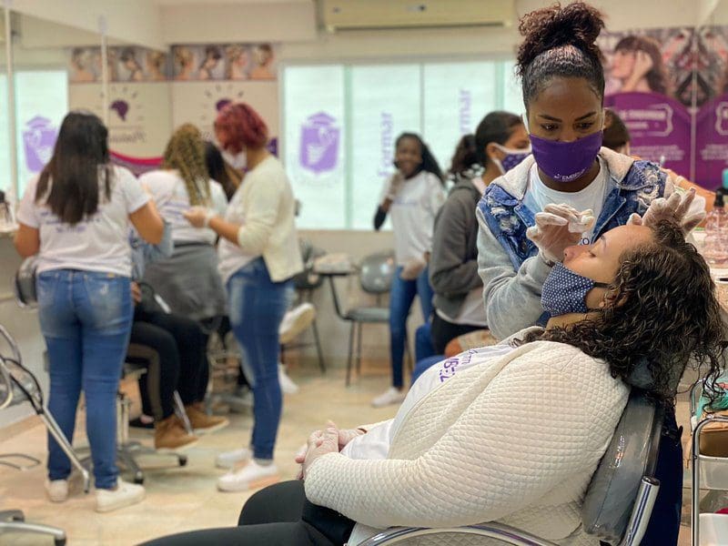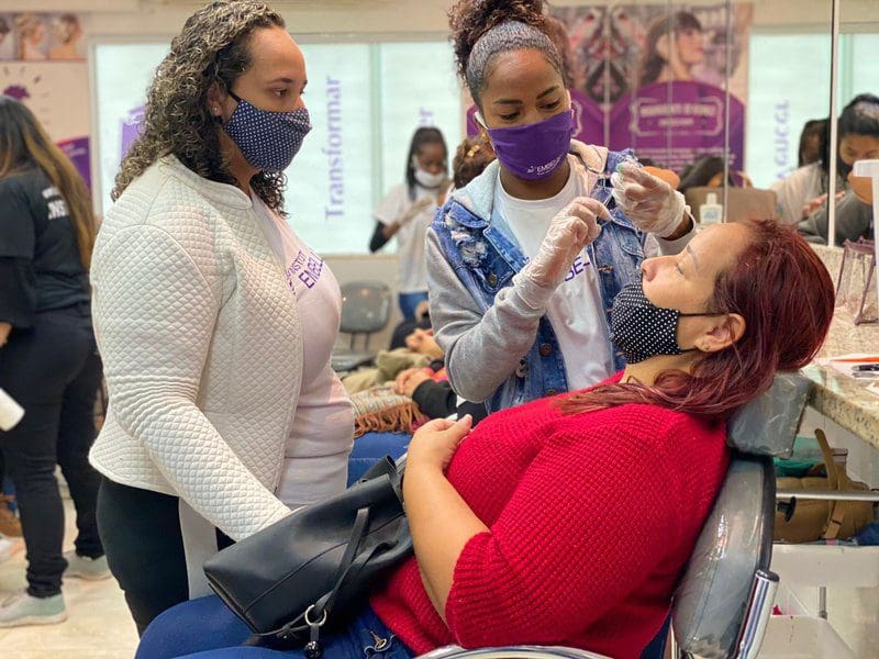 A instrutora da capacitação em design de sobrancelhas, Tatiane Alves, de 33 anos, foi aluna do curso ainda nas turmas iniciais e hoje se orgulha em poder passar seus conhecimentos a uma nova geração de profissionais.