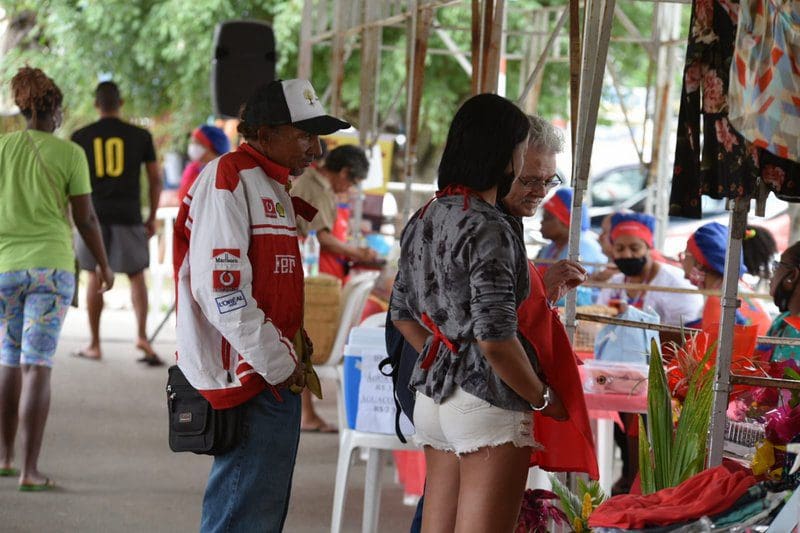 Os moradores da região passeavam pela feira neste sábado (30), muitos aproveitando a folga do fim de semana prolongado junto à família. Esse foi o caso do designer Yuri Oliveira, de 24 anos, que foi conferir os produtos disponíveis e comprou com a moeda social Mumbuca.