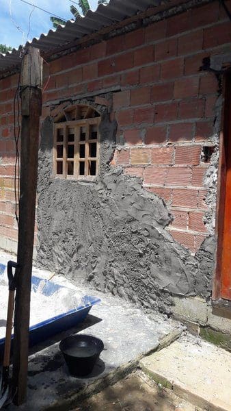 Uma equipe composta por três pedreiros fará o emboço da parte externa da casa. A obra terá previsão de dois meses, dependendo da demanda e das condições do tempo.