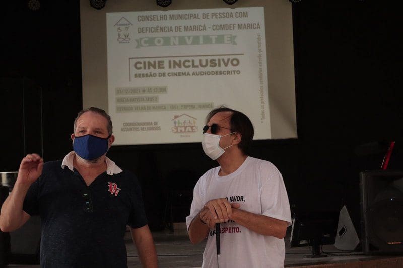 A Prefeitura de Maricá, por meio da Secretaria de Assistência Social, em parceria com o Conselho Municipal de Pessoas com Deficiência (Comdef), proporcionou uma experiência sensorial diferente nesta quarta-feira (01/12). Cerca de 15 pessoas com deficiência visual vieram de outros municípios e se juntaram a outras sem deficiência para uma sessão de cinema auto descrito, ou seja, não há projeção de imagens e os participantes apenas ouvem o conteúdo com uma narração descrevendo a cena.