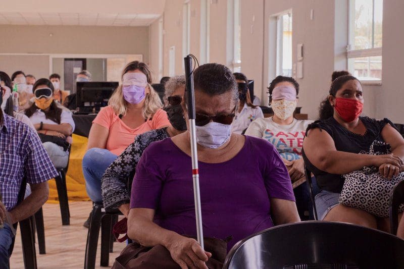 “Eu mesma fiquei parte do tempo com os olhos vendados e outra parte sem a venda. Nossa percepção muda porque ficamos mais focados, sem nos distrairmos com o que está ao redor. Dá para sentir um pouco como o deficiente visual se sente. Espero que as pessoas que participaram desta experiência saiam daqui realmente diferentes e mais sensibilizadas”, disse Maria Beatriz Bastos, que também é presidente do Comdef.