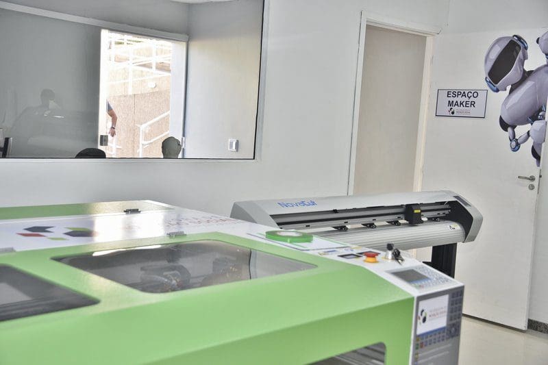 Ao lado da portaria, uma rampa de acesso para pessoas com deficiência leva para a sala de montagem e manutenção de computadores. No local, chama a atenção as máquinas grandes utilizadas em gráficas e onde os alunos irão aprender a manuseá-las e como fazer a manutenção dos equipamentos. Morador da Mumbuca, Lucas Balbino Ferreira, de 20 anos, é cadeirante, disse que não teve dificuldade em utilizar o espaço e falou sobre a expectativa para o curso. “Sempre fui ligado em tecnologia, computadores, videogames e fiquei muito animado em aprender a utilizar essas impressoras grandes”, afirmou Lucas.