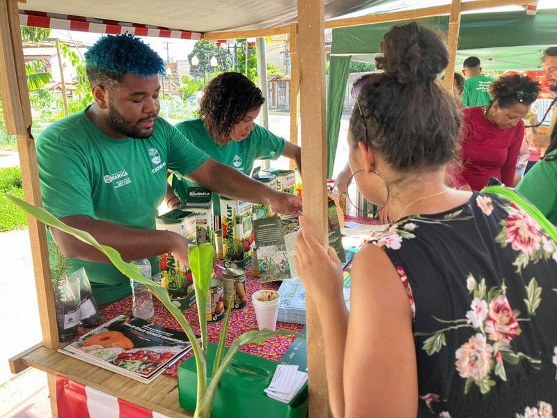 Durante o evento, representantes da Cooperativa de Trabalho em Assessoria a Empresas Sociais e em Assentamentos de Reforma Agrária (Cooperar) distribuíram mudas e sementes agroecológicas que foram produzidas em duas unidades de produção, a Fazenda Municipal Joaquin Piñero (Espraiado) e o loteamento Manu Manuela (São José do Imbassaí).