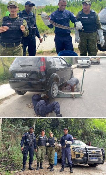 Os agentes foram acionados por moradores, por meio do Centro de Operações de Segurança (Ciosp), que ao chegarem no local, encontraram a serpente de aproximadamente 1,5 metros enrolada na suspensão do veículo. O carro precisou ser suspenso para retirada da cobra.