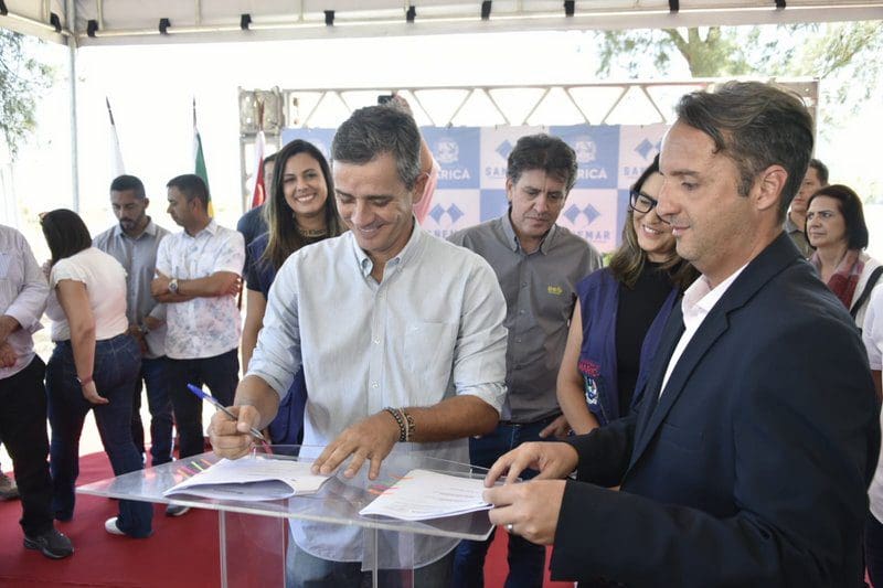 Durante a solenidade, também foi realizada a assinatura do contrato da obra de esgotamento sanitário do Recanto. Presente no evento, o prefeito Fabiano Horta falou sobre a importância de mais essa realização, fundamental para a cidade.