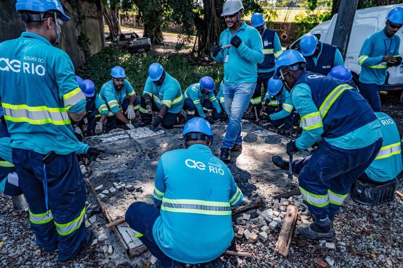 Pensar no futuro sem esquecer do passado. Este tem sido o desafio da Águas do Rio desde que assumiu as operações de saneamento de uma cidade histórica como o Rio de Janeiro. Uma das ações promovidas pela concessionária para cuidar da antiga capital do Império Português, foi a capacitação de seus agentes de campo na repavimentação em pisos de pedras portuguesas. Aproximadamente 190 colaboradores estão hoje aptos para realizar o trabalho de recuperação e manutenção dessa herança histórica.
