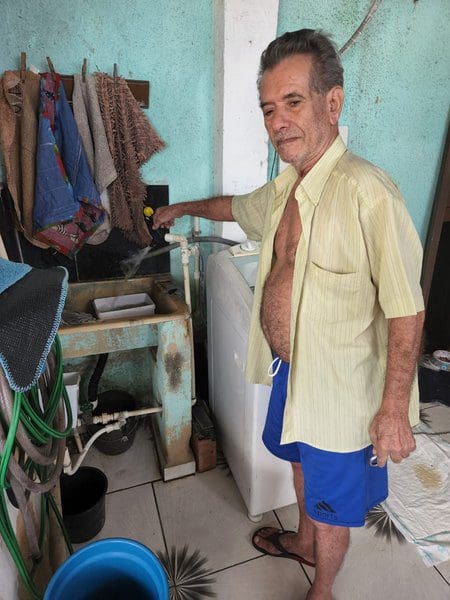 O esforço da concessionária beneficiou Antônio Fernandes Marinho, conhecido como Tuninho, morador do bairro Granja Rosalina, em Queimados. Aos 63 anos, ele e sua família usavam água de chuva até para beber e viravam a noite buscando formas de abastecer sua casa. “Cansei de passar madrugadas em claro andando pelas ruas do bairro com minha bomba num carrinho de mão para tentar puxar água. Hoje a gente olha para trás e agradece porque a vida mudou, dá para tomar banho de chuveiro e tem água na torneira todos os dias”, afirma.