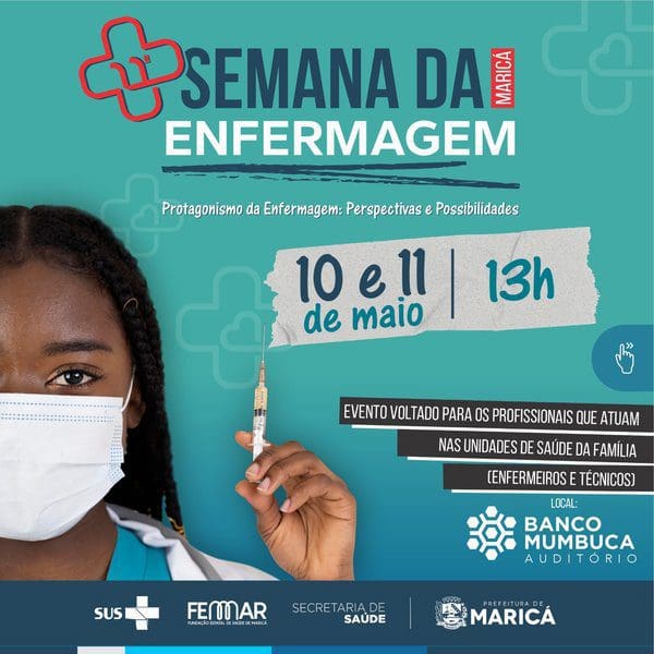 A Prefeitura de Maricá, por meio da Secretaria de Saúde e da Fundação Estatal de Saúde de Maricá (Femar), realiza na próxima quarta e quinta-feira (10 e 11/05), a 11ª Semana da Enfermagem de Maricá, no auditório do Banco Mumbuca, no Centro, reunindo enfermeiros e técnicos de enfermagem que atuam na cidade. Com tema “O Protagonismo da Enfermagem: Perspectivas e Possibilidades”, o evento começa às 13h e contará com mesa de discussão e apresentação de trabalhos científicos da Atenção Primária à Saúde do município.