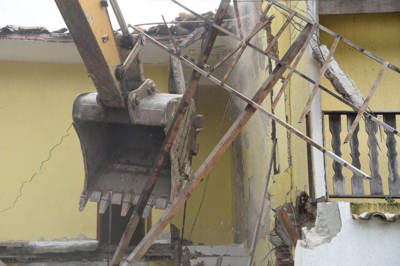 A Prefeitura de Maricá, por meio Grupo de Apoio Técnico Especializado em Demolições (Gated), iniciou nesta sexta-feira (12/05) a derrubada de um total de 11 casas que ocupavam, de forma irregular, uma área pública no bairro Parque da Cidade, na região do Centro. As residências, erguidas na Avenida Beira Rio (às margens do rio Mumbuca), já estavam desocupadas e haviam entrado em colapso desde o ano passado, sendo que uma delas já havia desabado.