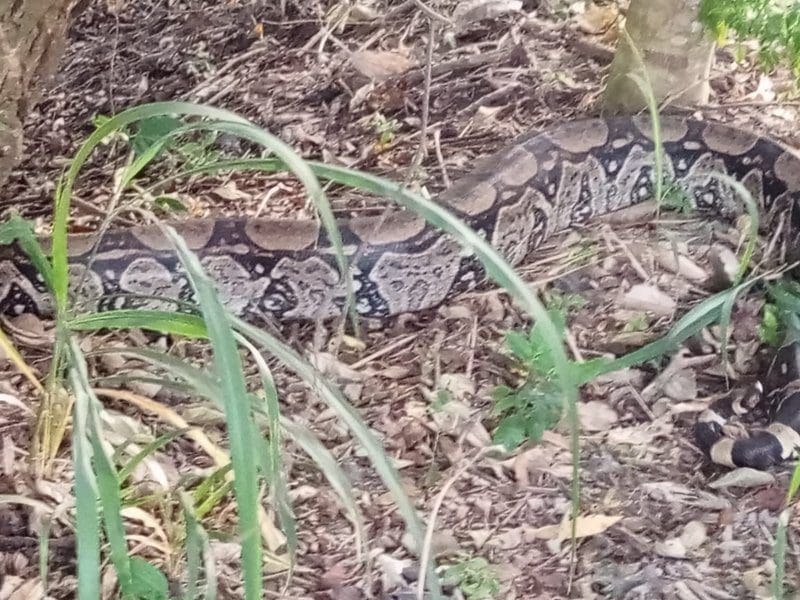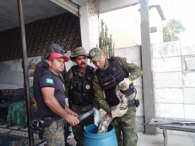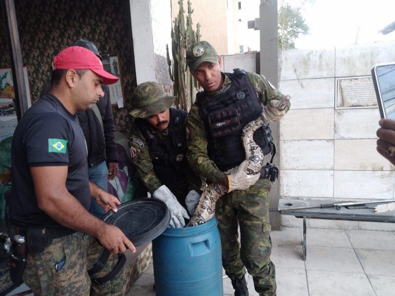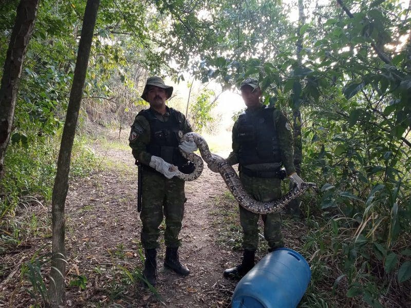 Os agentes foram acionados por moradores da região. Ao chegarem no local os GMs encontraram a serpente, que foi contida pela equipe Força tarefa Civil Ambiental (FGCA) em uma caixa especial. O animal foi transferido com os devidos cuidados para a bombona de contenção pela equipe do GEDAM. A cobra foi capturada sem ferimentos e devolvida ao seu habitat natural em uma área de mata.