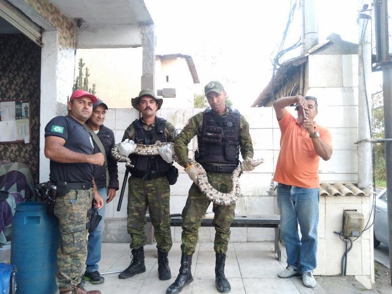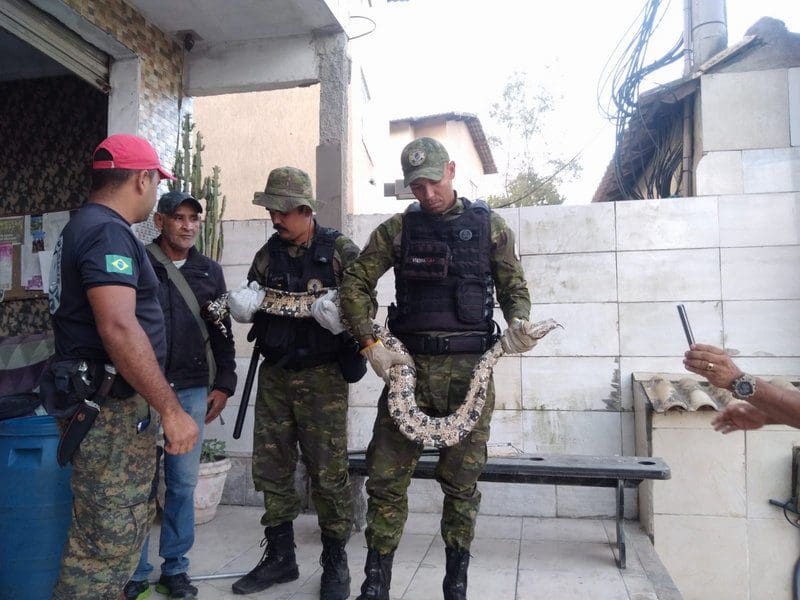 Animal com dois metros de comprimento foi encontrado em uma vila de casas em Itaipuaçu