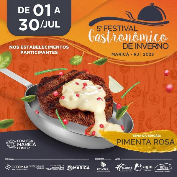 Com mais de 50 restaurantes confirmados, o 5º Festival Gastronômico de Inverno de Maricá vai começar neste sábado (01/07), em diversos pontos da cidade. Os participantes vão oferecer pratos elaborados exclusivamente para o evento, com a pimenta rosa, tema desta edição. O ingrediente é típico de Maricá e tem grande versatilidade na gastronomia.