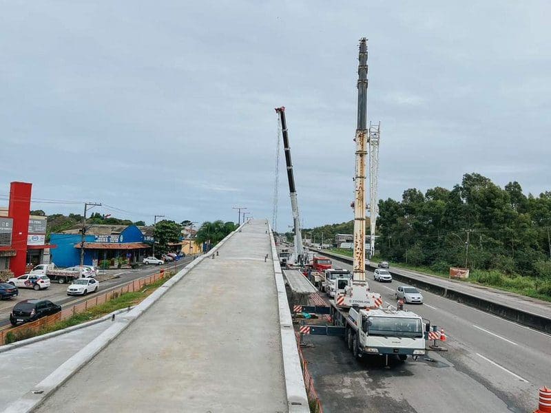 A Prefeitura de Maricá, por meio da autarquia Serviços de Obras de Maricá (Somar) instalou nesta sexta-feira (21/07) as vigas centrais que irão compor a estrutura da nova passarela do Parque Nanci, que fica no km 25 da Rodovia Amaral Peixoto (RJ-106). Para dar continuidade à construção da estrutura, o município aguarda a retirada dos postes de energia elétrica no sentido Niterói da rodovia para que o trabalho avance e seja concluída esta etapa da obra. Ao todo, serão quatro passarelas construídas com recursos próprios da Prefeitura de Maricá. As outras estruturas serão implantadas no bairro Inoã, em São José do Imbassaí e no loteamento Manu Manuela.