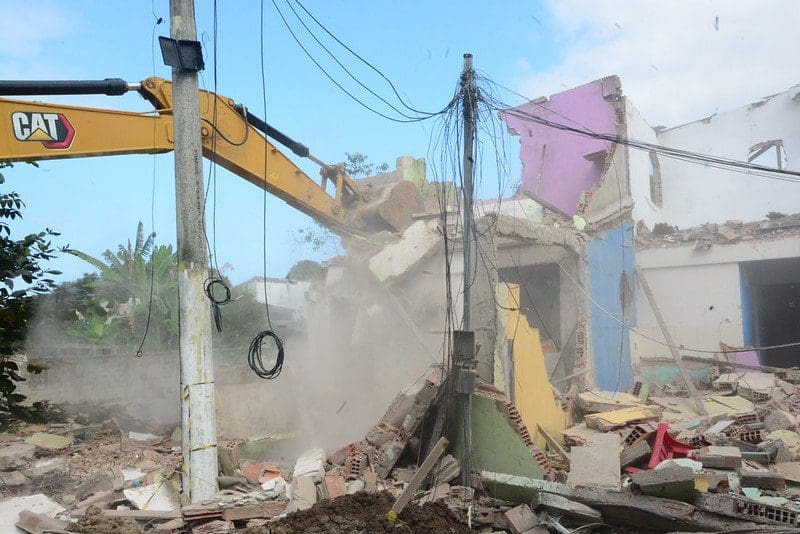 A Prefeitura de Maricá, por meio do Grupo de Apoio Técnico Especializado em Demolições (GATED), retornou nesta sexta-feira (04/08) à Rua Rinalda Rodrigues da Silva, na Mumbuca, para mais uma etapa da retirada de construções irregulares da faixa marginal de proteção do rio Mumbuca A ação faz parte do “Programa Habitar- Reassentamentos”. Nessa etapa oito imóveis foram retirados do local e parte do entulho das outras demolições também foi removida. O trabalho das equipes prossegue neste sábado (05/08).