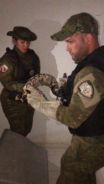 Os agentes foram acionados por meio do Centro de Operações de Segurança (Ciosp) e encontraram a cobra dentro de um cômodo da residência. O animal foi capturado sem ferimentos e devolvido ao seu habitat natural em uma área de mata.