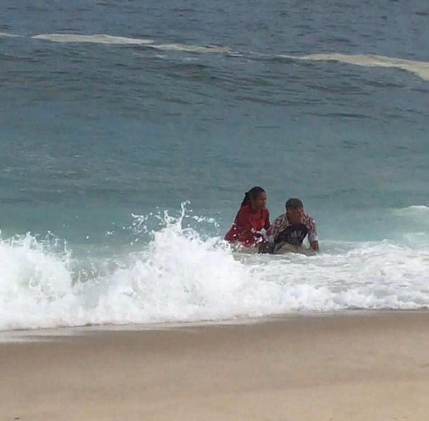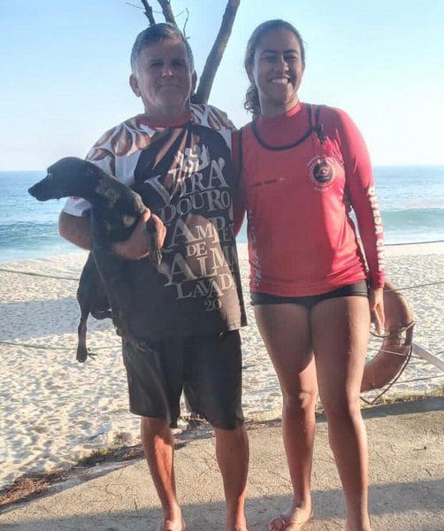 “Foi no momento que o Manelzinho entrava no mar. Tudo aconteceu muito rápido. A gente viu aquela situação e saiu correndo. Graças a Deus, ele pulou, sabe nadar e estava bem fisicamente, ou poderia ter acontecido algo pior. Mas o cachorro virou junto com o barco. O Feijão está sempre com o Manelzinho e graças a Deus, também não se machucou”, conta Lorena Ismael, uma das guarda-vidas que participou do resgate.