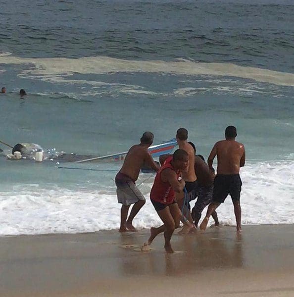 O motor do barco e as redes ficaram numa posição perigosa próximo à praia e precisaram ser retirados.