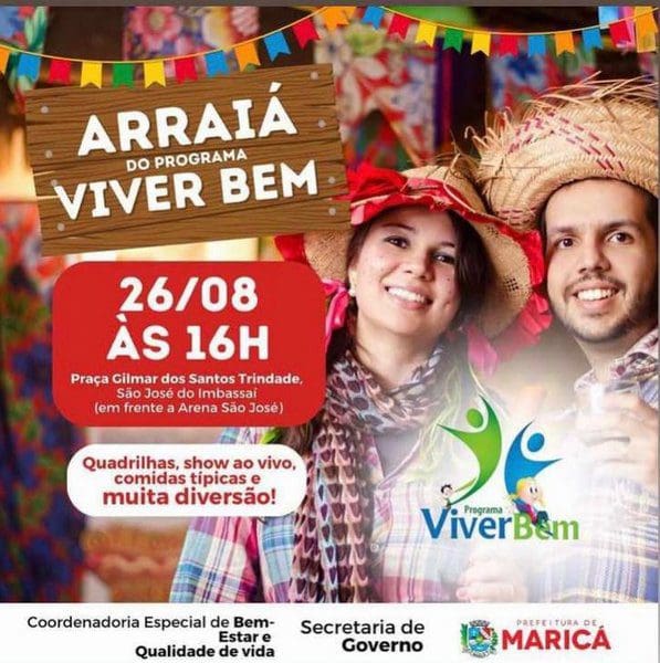 A Prefeitura de Maricá, por meio da Secretaria de Governo, realiza no próximo sábado (26/08), das 16h às 23h, o Arraiá do programa “Viver Bem” na Praça Gilmar dos Santos Trindade, em frente à Arena São José, em São José do Imbassaí. Cerca de mil pessoas, entre moradores e participantes dos polos de São José, Itapeba, Inoã, Ponta Negra e Bambuí são aguardados no evento, que já virou tradição no bairro.