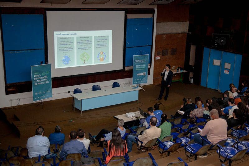 A ampliação da produção de água de reuso na infraestrutura operada pela Águas do Rio foi um dos temas do Seminário “Reuso de Efluentes e Geração de Negócios”, promovido pela Universidade Estadual do Rio de Janeiro (Uerj), nesta quarta-feira (30), no campus principal da instituição, no Maracanã, Zona Norte carioca. O projeto sustentável da concessionária, que vai gerar benefícios ao meio ambiente e para a população fluminense, fez parte do painel “Oportunidades de reuso de efluentes para fins industriais”, durante o evento organizado pelo Departamento de Engenharia Sanitária e do Meio Ambiente da Uerj.