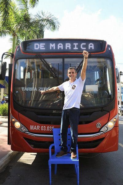 “Não existe no Brasil nenhuma cidade acima de 200 mil habitantes que tenha um ônibus de graça que liga a cidade de ponta a ponta. Em todas as outras, mais de 5 mil municípios desse Brasil, todo mundo paga a passagem. E o pagar a passagem já é um impedidor de muita coisa, para procurar um emprego, ir ao museu, à biblioteca, porque só aquele dinheiro de gasto de uma passagem do ir e vir já vai fazer muita falta em casa. E a gente consegue construir aqui em Maricá esse modelo internacional que chama atenção do mundo inteiro, uma política pública exitosa que a cidade já abraçou”, declarou Joãozinho.