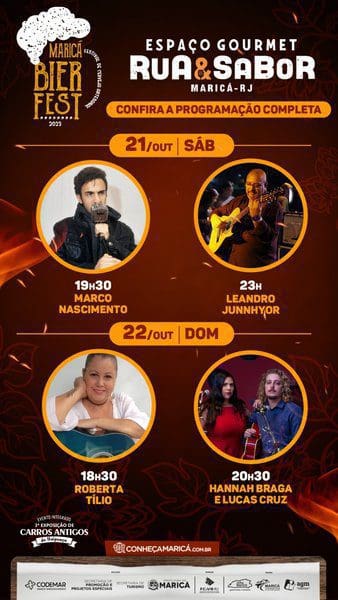 Treze artistas locais se apresentarão em dois palcos no Maricá Bier Fest e no Festival Rua & Sabor. Evento ainda terá mostra de carros antigos