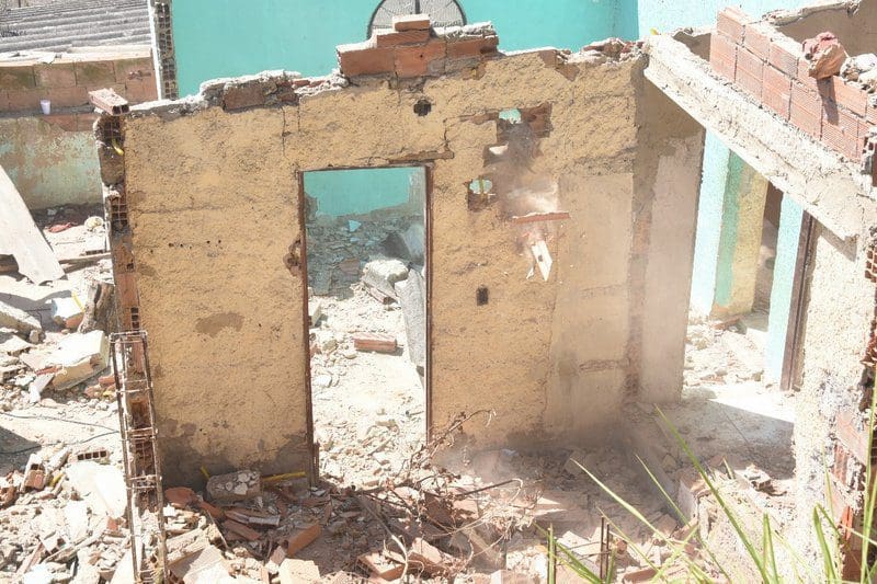 Durante a ação desta quinta-feira, as equipes das secretarias de Urbanismo, de Habitação e Assentamentos Humanos e da autarquia Serviços de Obras de Maricá (Somar), agentes do Programa estadual de Integração na Segurança (Proeis), com apoio da Guarda Municipal, utilizaram ferramentas manuais para demolir os imóveis.