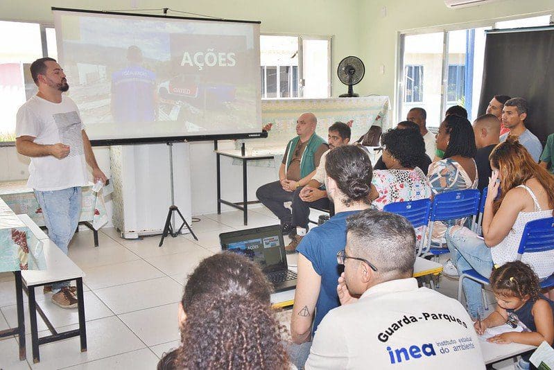 Realizado na Escola Municipal Professor Ataliba de Macedo Domingues, na Morada das Águias, em Itaipuaçu, o encontro também contou com representantes das secretarias de Urbanismo, Habitação e Assentamentos Humanos, Assistência Social, Cidade Sustentável; Grupamento Ambiental da Guarda Municipal; Defensoria Pública; Conselho do Meio Ambiente e Instituto Floresta Darcy Ribeiro (Amadarcy).