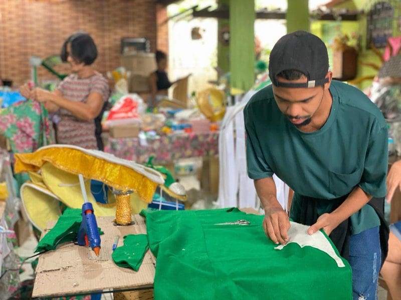 A presidente da escola, Antônia de Oliveira, transformou a residência no Centro em um ateliê para preparar as fantasias e os adereços para a folia. Segundo ela, 12 pessoas trabalham dia e noite para deixar tudo preparado para o desfile na terça-feira.