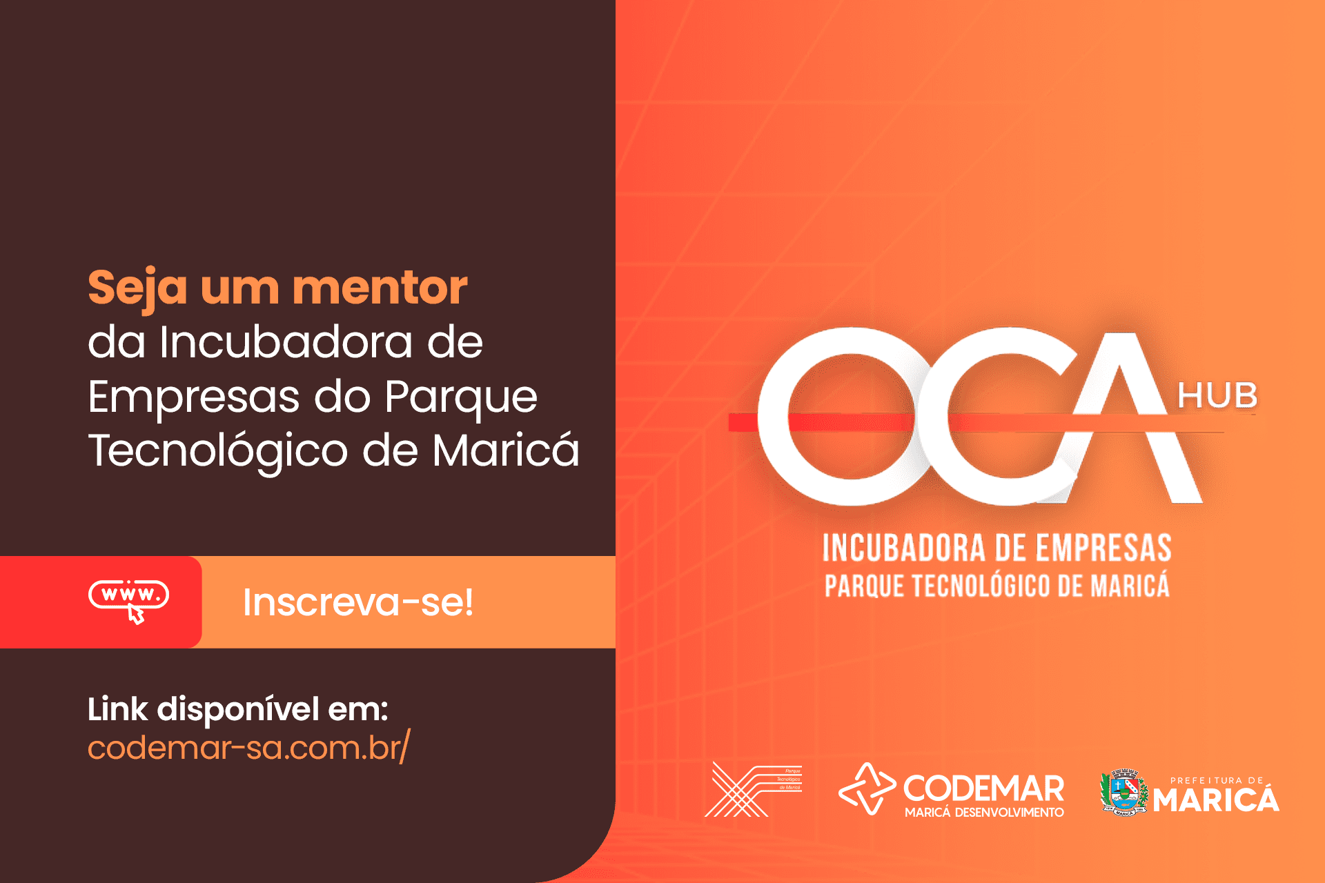 OCA Hub é o nome da incubadora de negócios que será lançada pelo Parque Tecnológico de Maricá, no mês de março. Para colaborar com o desenvolvimento das startups de Maricá e região, que vão se instalar no local, serão convocados mentores com expertise e especializados em cada estágio da jornada empreendedora dos incubados selecionados no edital de 2023. O Parque Tecnológico foi idealizado pela Prefeitura de Maricá, por meio da Companhia de Desenvolvimento de Maricá (Codemar).