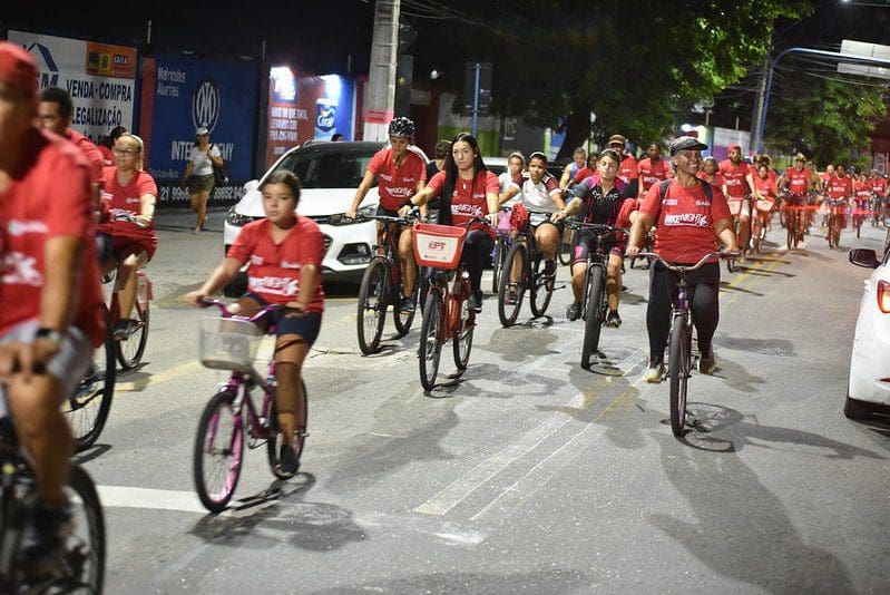 A Prefeitura de Maricá, por meio da Secretaria de Esporte e Lazer, promoveu nesta terça-feira (12/03) mais uma edição do Bike Night em alusão ao mês das Mulheres. Com percurso da Praça Orlando de Barros Pimentel, no Centro, até o Deck pôr do sol, em Araçatiba, o passeio ciclístico, que incentiva a prática de atividades físicas na cidade, reuniu mais de 500 inscritos que participaram dos sorteios e se divertiram ao som do trio elétrico.