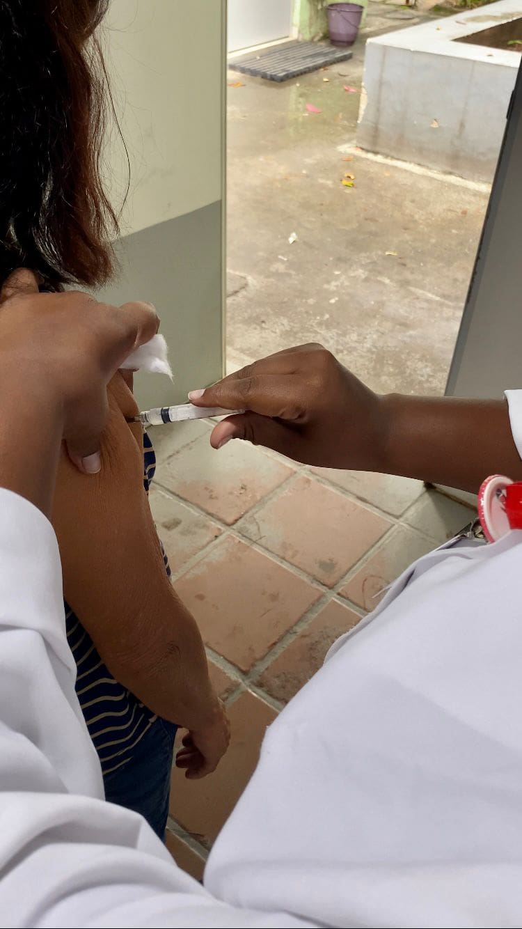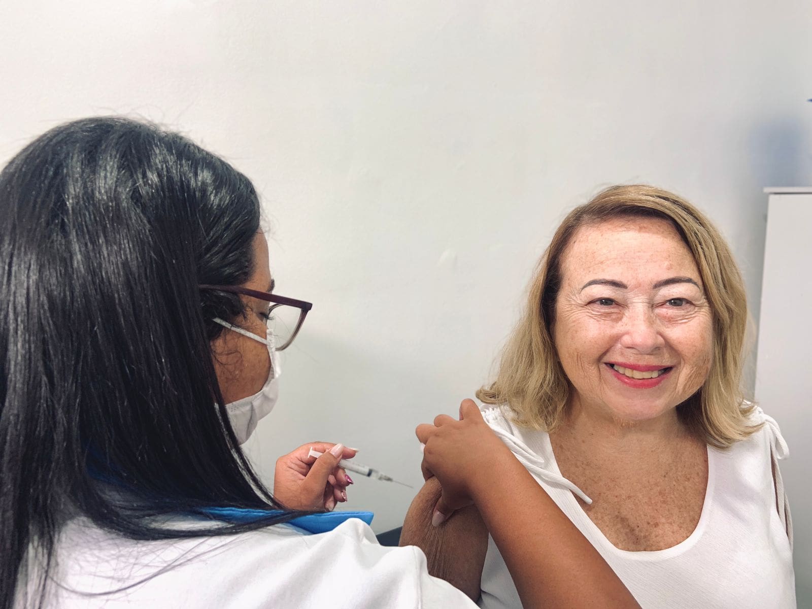 No primeiro dia de campanha, Maria da Graça Teixeira, de 70 anos, se vacinou na USF Jardim Atlântico e aprovou a iniciativa. Ela também levou o marido para receber a dose anual e destacou o seu papel para o bem-estar no dia a dia.