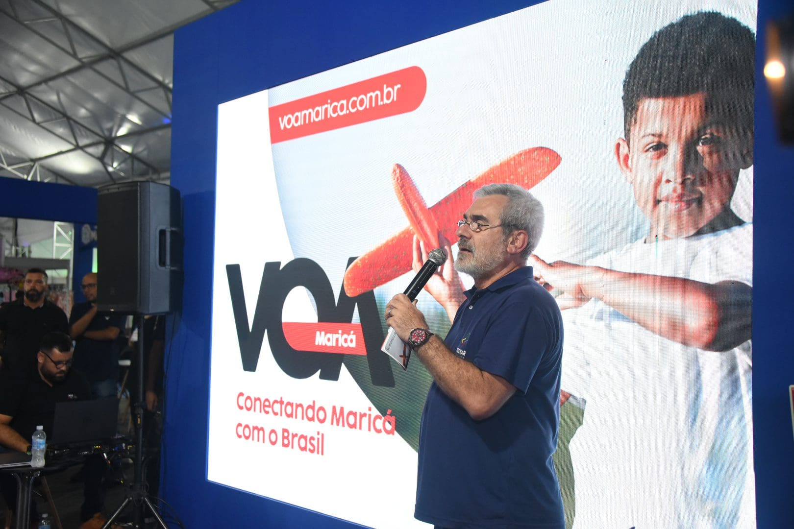 Com apoio da Prefeitura, a Expo Maricá – maior feira de negócios, inovação e tecnologia da cidade – foi aberta na quinta-feira (11/04), no Esporte Clube Maricá, no Centro. A novidade foi o lançamento do programa Voa Maricá, que terá voos comerciais diários operados pela Azul Linhas Aéreas a partir do dia 6 de maio, com viagens do aeroporto municipal para Viracopos, em Campinas (SP), e Brasília com tarifa social a partir de R$ 100. As vendas serão feitas pelo site (voamarica.com.br) a partir de 18/04 e serão aceitos pagamentos em Mumbuca, a moeda social de Maricá.