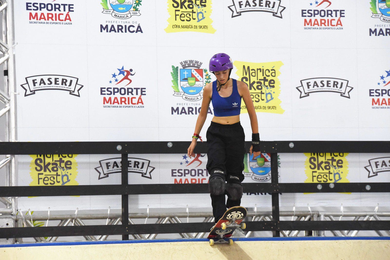 A Prefeitura de Maricá promoveu nesta quinta-feira (02/05) mais um dia das competições do festival “Maricá Skate Fest” com as categorias iniciante e páraskate (para pessoas com deficiência), além da visita de 44 alunos da EM Carlos Manoel Lima Costa, de Itaipuaçu, que prestigiaram a competição, que acontece na arena montada entre as ruas Van Lerbergue (antiga 34), Elisa Vieira Veras (antiga 52) e Alice Máximo de Souza (antiga 53), em Itaipuaçu, até domingo (05/05). O evento é promovido pela Secretaria de Esporte e Lazer, em parceria com a Federação de Skateboard do Estado do Rio de Janeiro (Faserj).