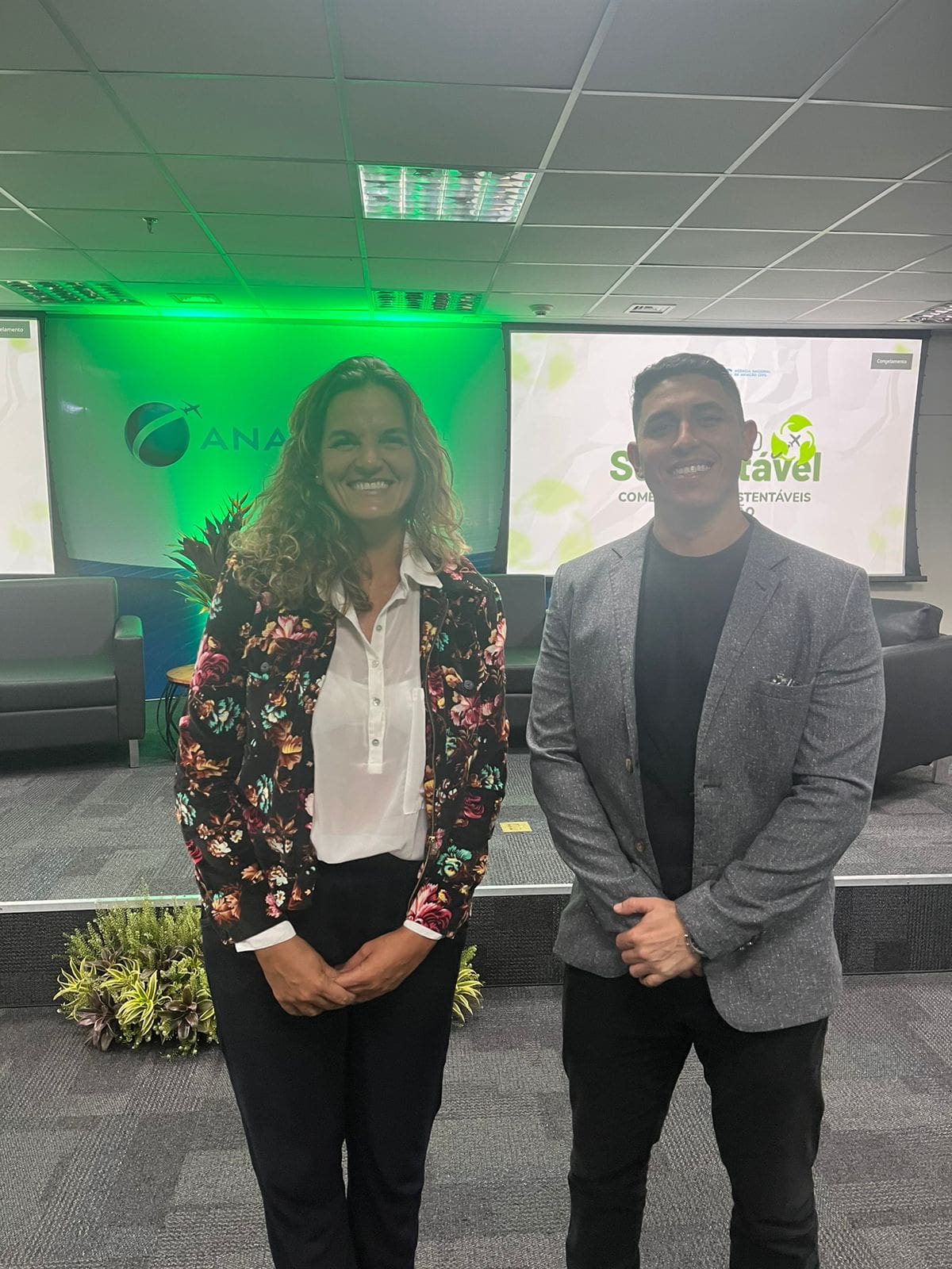 O coordenador de Sistema de Gerenciamento de Segurança Operacional (SGSO), Frederico Ferreira, e a coordenadora do Programa Recicla Codemar, Juliana Oliveira, participaram do evento, que teve como tema “Combustíveis Sustentáveis de Aviação”, na última quarta-feira (05/06), no auditório da sede da Agência, em Brasília (DF).