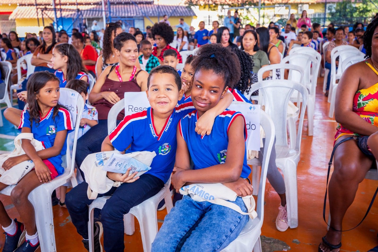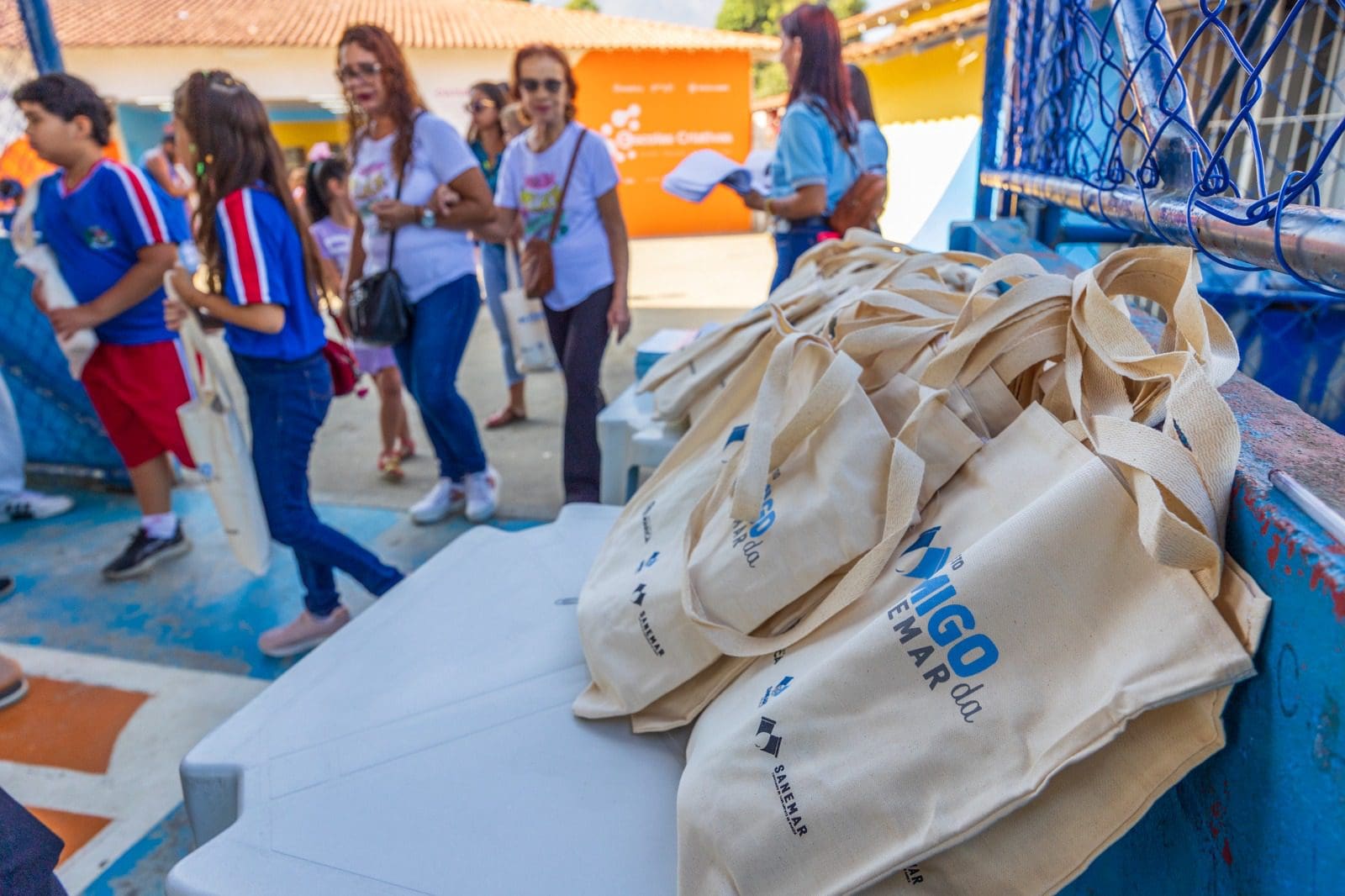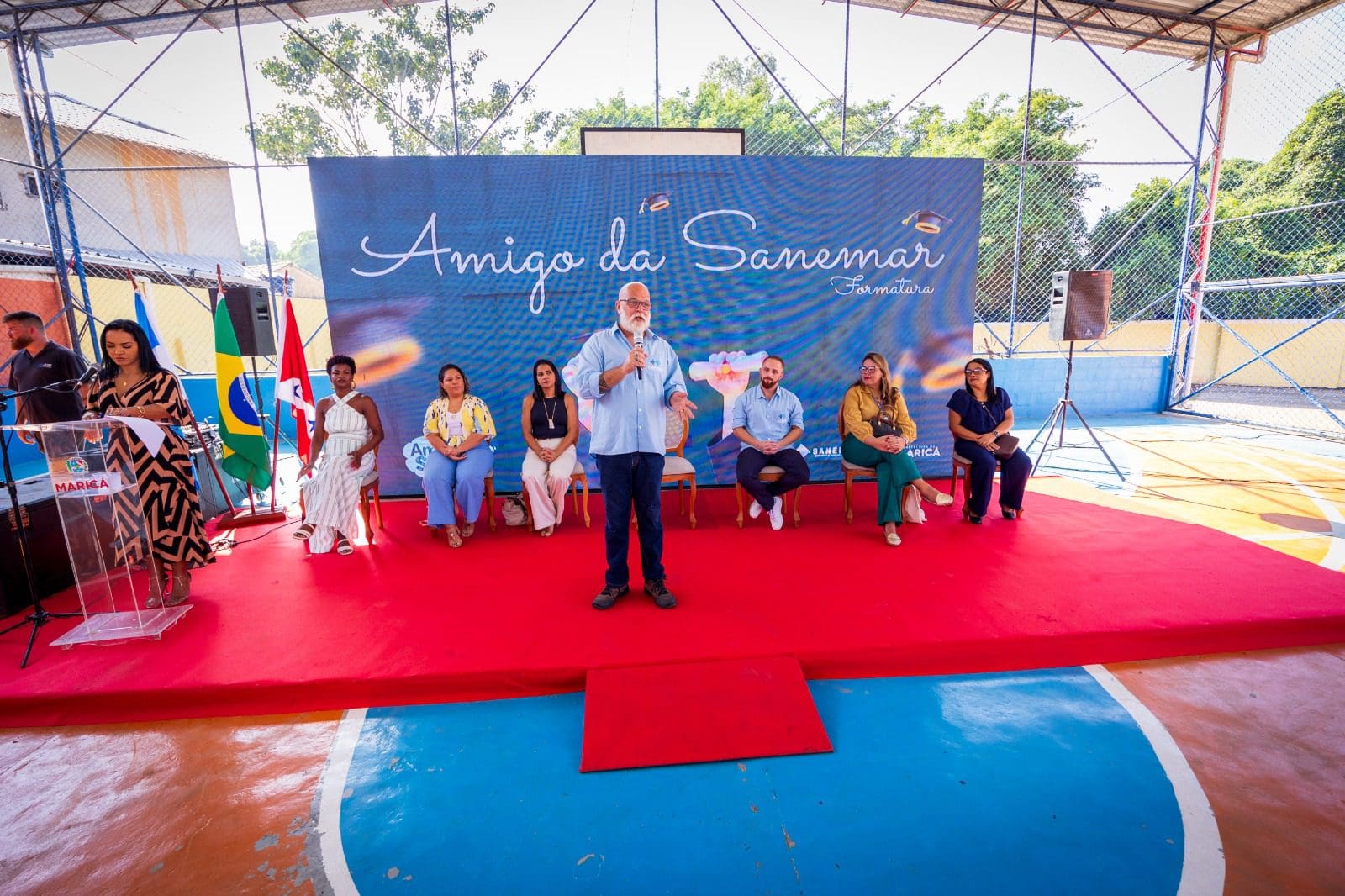 A Prefeitura de Maricá, por meio da Companhia de Saneamento de Maricá (Sanemar), formou neste sábado (08/06) cerca de cem alunos da rede municipal de ensino que participaram do curso de formação socioambiental “Amigo da Sanemar”. A cerimônia realizada na quadra da Escola Municipal Darcy Ribeiro, em Inoã, contou com a presença dos alunos do 1º ao 5º ano da Escola Municipal Romilda Nunes, onde 270 crianças conheceram, em 2023, o programa conduzido pela equipe do Sanear Educação, setor educacional da Sanemar.