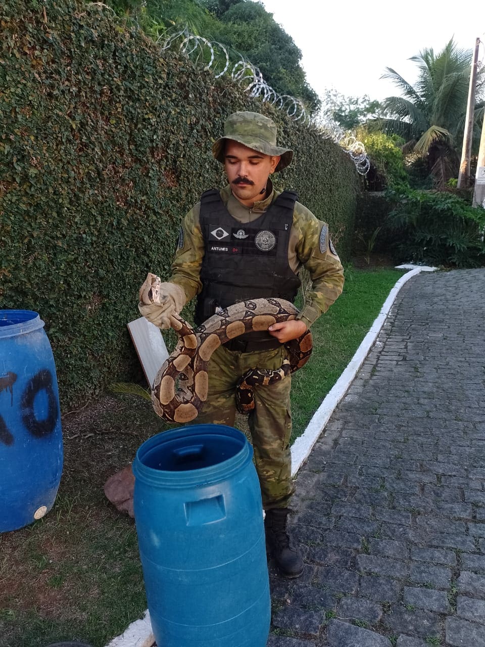 Jiboia e ouriço foram encontrados por moradores, que acionaram o Gedam