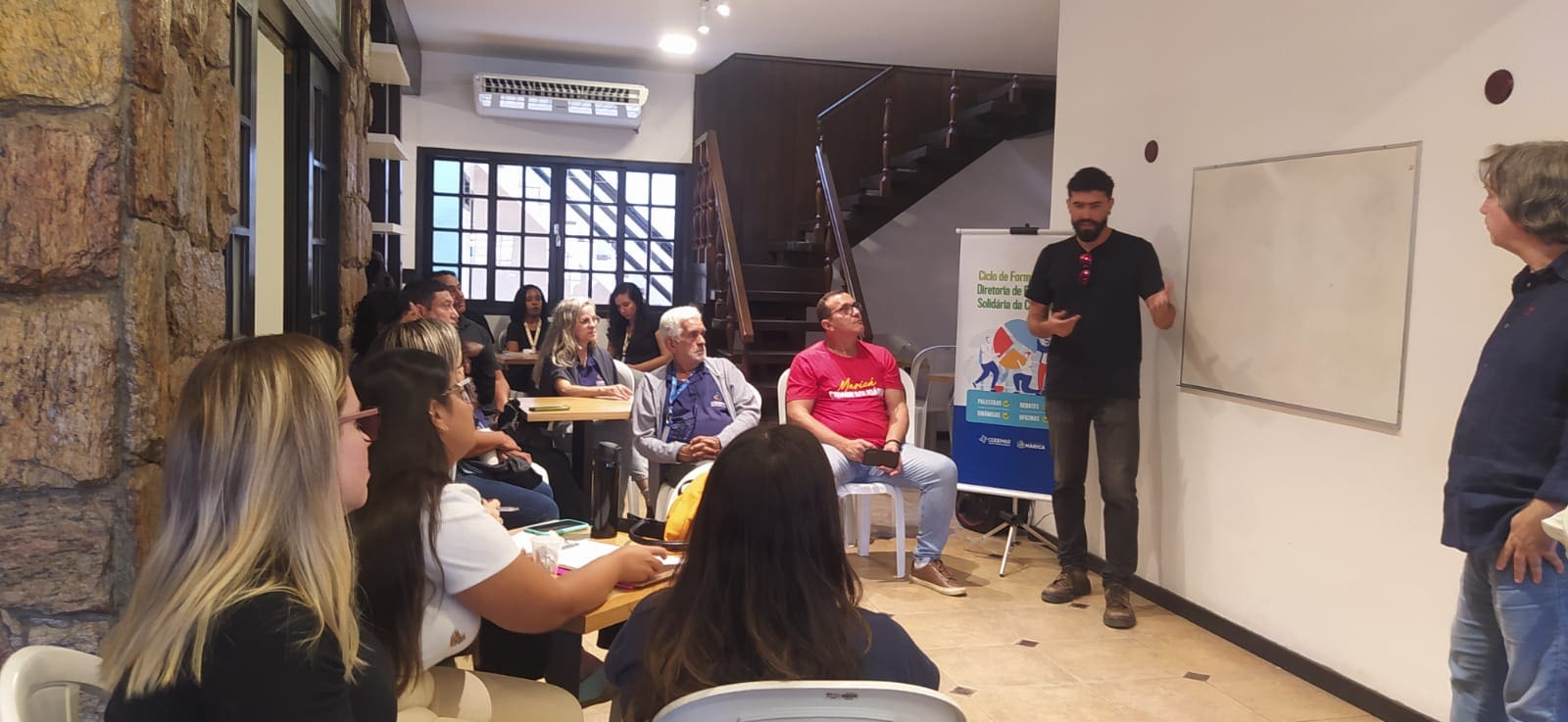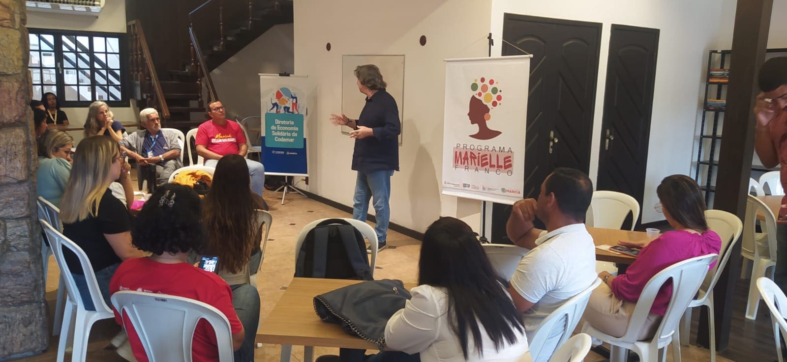 A diretoria de Economia Criativa e Sustentabilidade da Companhia de Desenvolvimento de Maricá (Codemar) participou do ciclo de formação em economia solidária, promovido pela diretoria de Economia Solidária e Responsabilidade Social da companhia. A reunião aconteceu na última semana, na casa sede do Programa Marielle Franco, no Eldorado, com objetivo da troca de conhecimento entre as duas equipes.