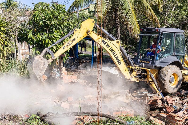 A Prefeitura de Maricá, por meio do Grupo de Apoio Técnico Especializado em Demolições (Gated), demoliu nesta terça-feira (02/07) uma casa em construção em São José do Imbassaí. O imóvel estava sendo erguido no canteiro de obras da Estação de Tratamento de Esgoto (ETE) que vai atender o bairro.