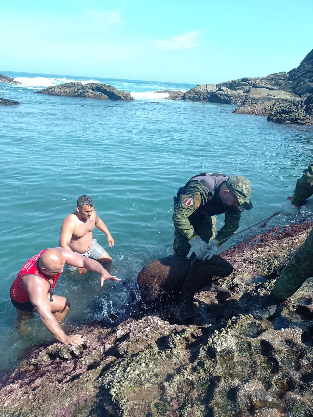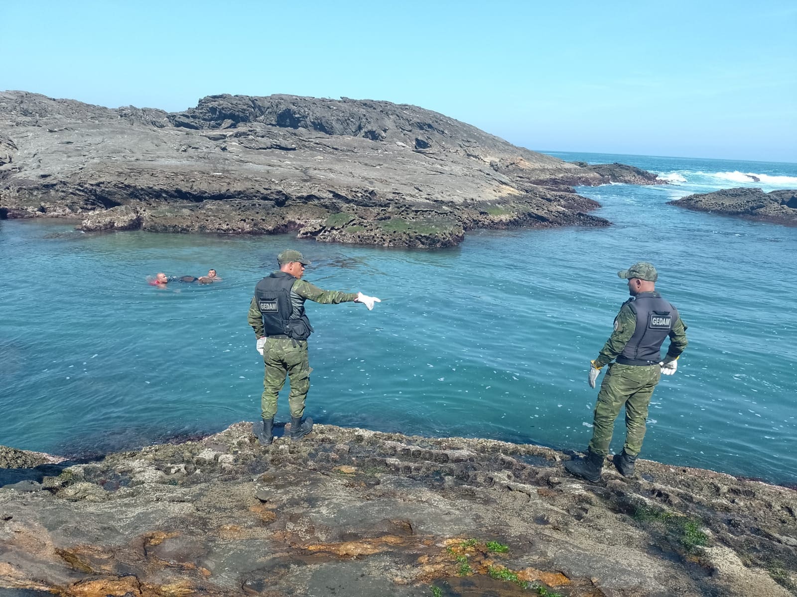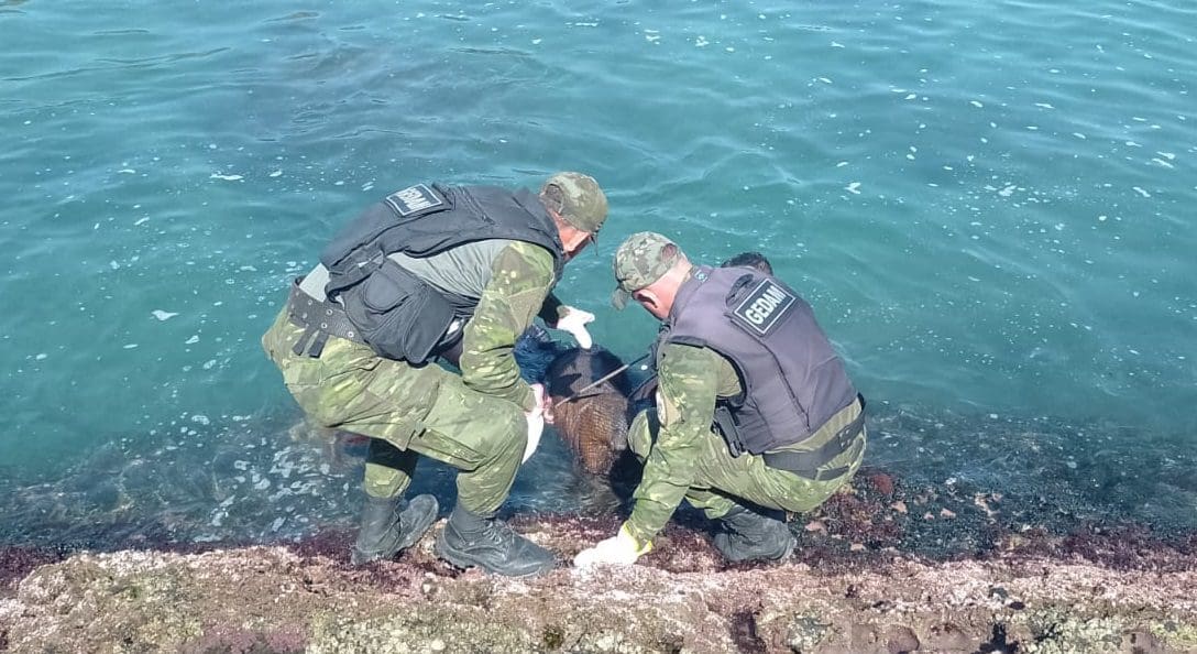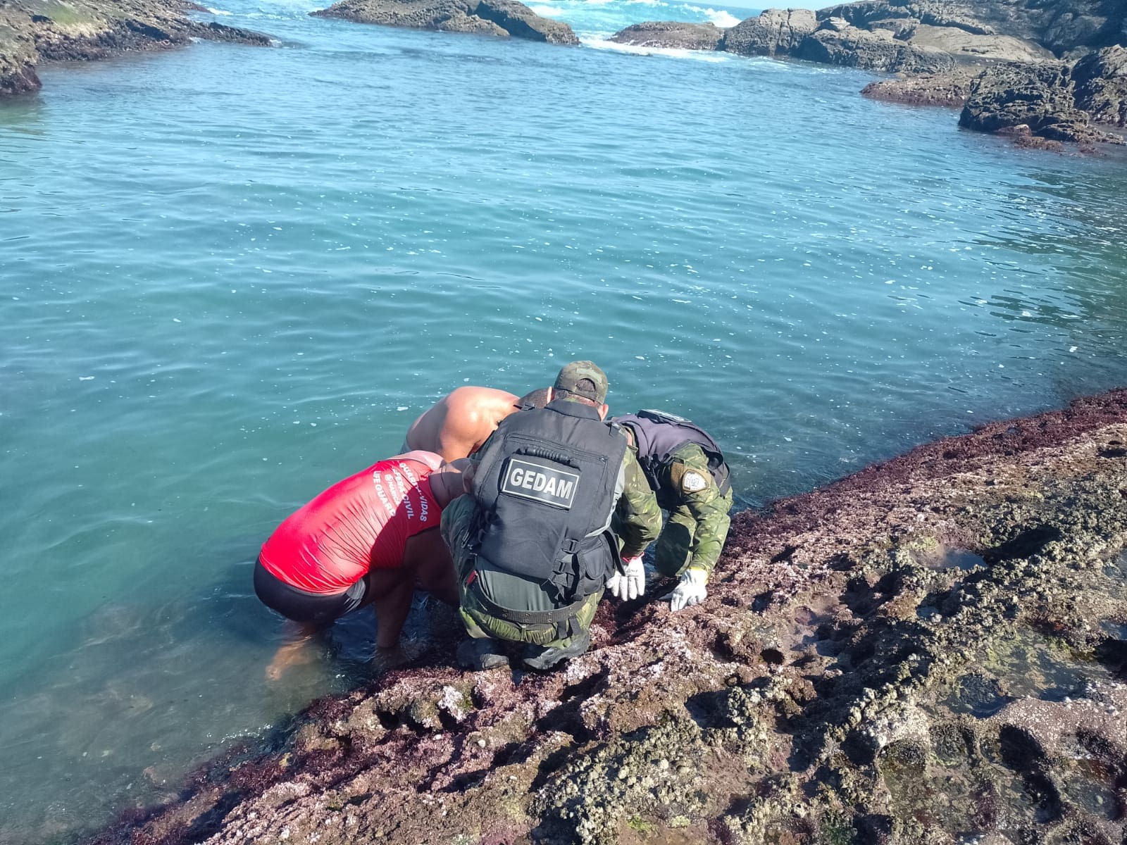 Um banhista entrou em contato com agentes do Gedam, que estavam em patrulhamento na região