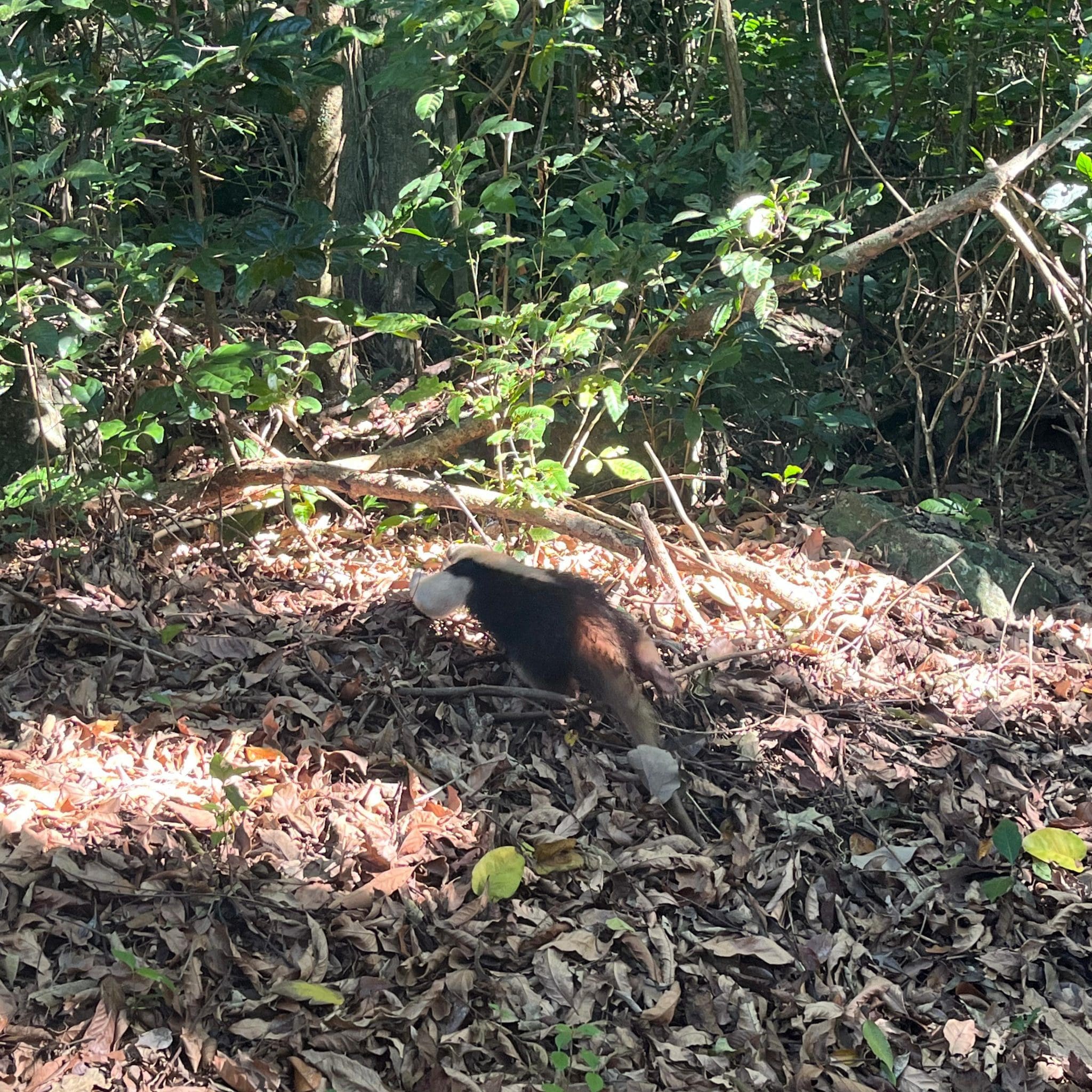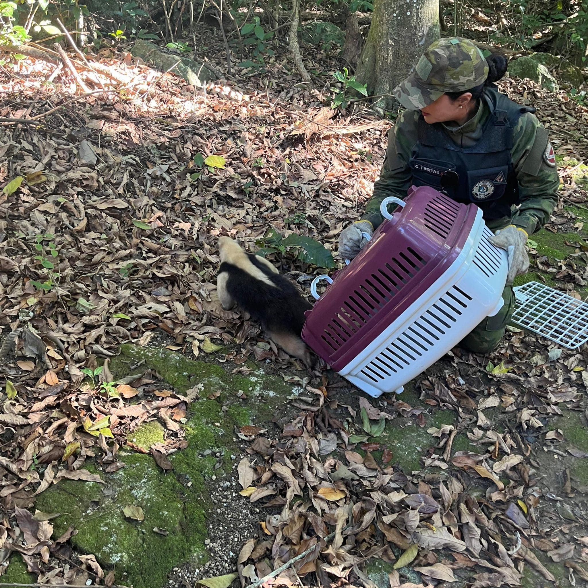 O tamanduá não estava machucado e/ou debilitado. Por isso, foi resgatado e reinserido na natureza na própria zona de amortecimento, já que é o habitat natural do animal.