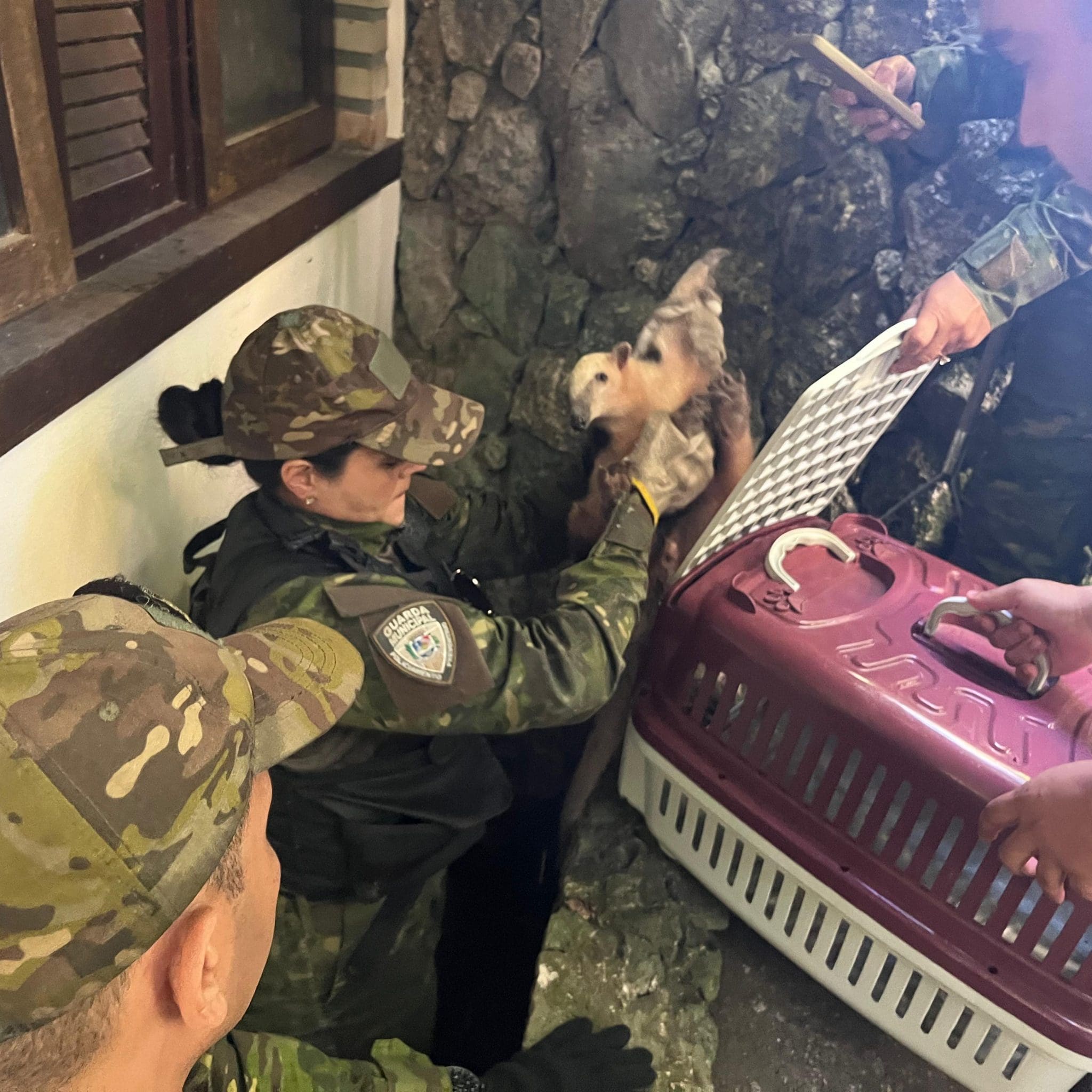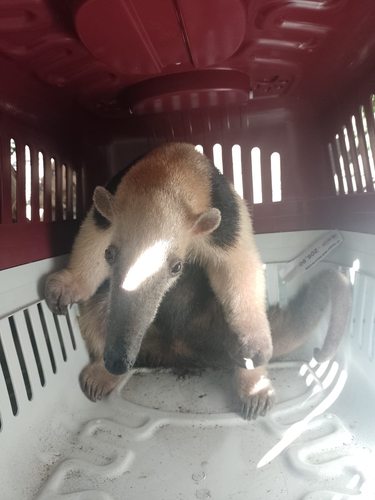 Os guardas do Gedam foram acionados pelo Centro Integrado de Operações na Segurança Pública (Ciosp), operador do Disque Seop e da Central 153, contato da Guarda Municipal. Segundo a corporação, o tamanduá estava acuado por conta da presença dos cachorros da residência. No entanto, o animal silvestre não foi atacado.